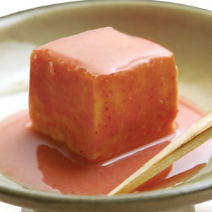 モンドセレクション2007最高金賞受賞★ビールに合うピリ辛の豆腐よう、島唐辛子入り龍潭豆腐よう 辛味6個入り 価格: 1,890円 レビュー評価:0.0 レビュー数:0 龍潭(りゅうたん)豆腐よう[辛味](6個入)名称豆腐加工食品(豆腐よう)内容量6個入原材料豆腐、米麹(黄麹・紅麹)、泡盛、砂糖、塩、唐辛子(島唐辛子)賞味期限常温で約4ヶ月時間とともに発酵が進み褐変しますが品質に問題はありません。冷蔵するとより風味を保つ事ができます。保存方法直射日光・高温多湿を避けて保存製造者株式会社ジェイシーシー沖縄県糸満市西崎町4-16-16フリーダイヤル0120-53-1024豆腐ようとは?豆腐ようは中国から伝わった乳腐(ふにゅう)を元に琉球王朝で花開いた独特の高級食品です。希少な泡盛を使い、製法が難しいため、貴族の間で珍重されました。高級な素材を使い、手間と時間をかけ Supported by 楽天ウェブサービス |